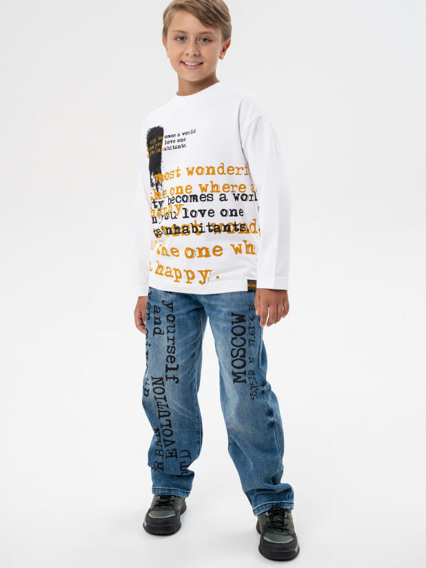 Стильный белый лонгслив оверсайз для мальчика подростка от PlayToday — базовая футболка с длинным рукавом, которая легко впишется и в школьный гардероб, и в повседневные образы. Модель выполнена из мягкого хлопкового трикотажа, дышащего и приятного к телу, безопасного для кожи ребёнка. Современный принт добавляет яркий акцент, делая вещь модной и удобной одновременно.