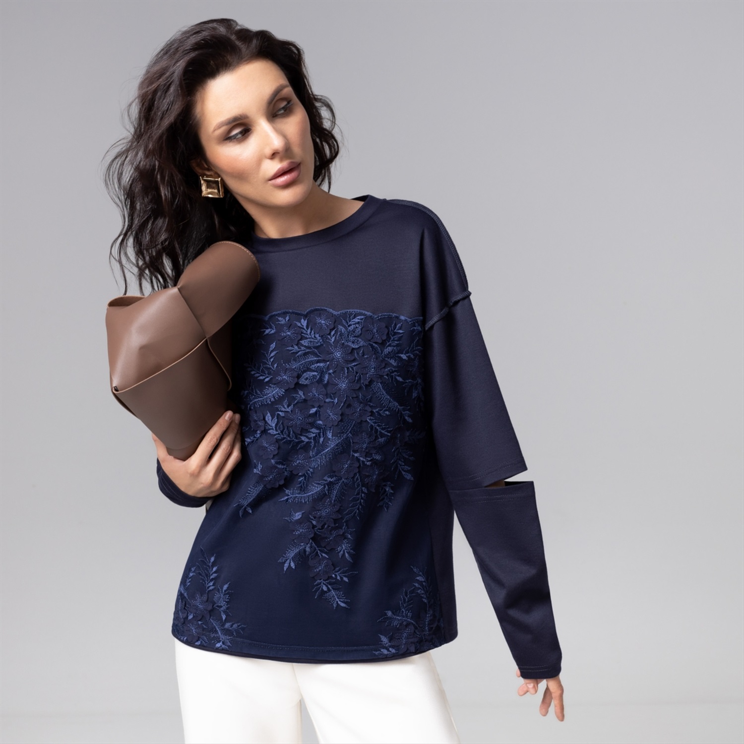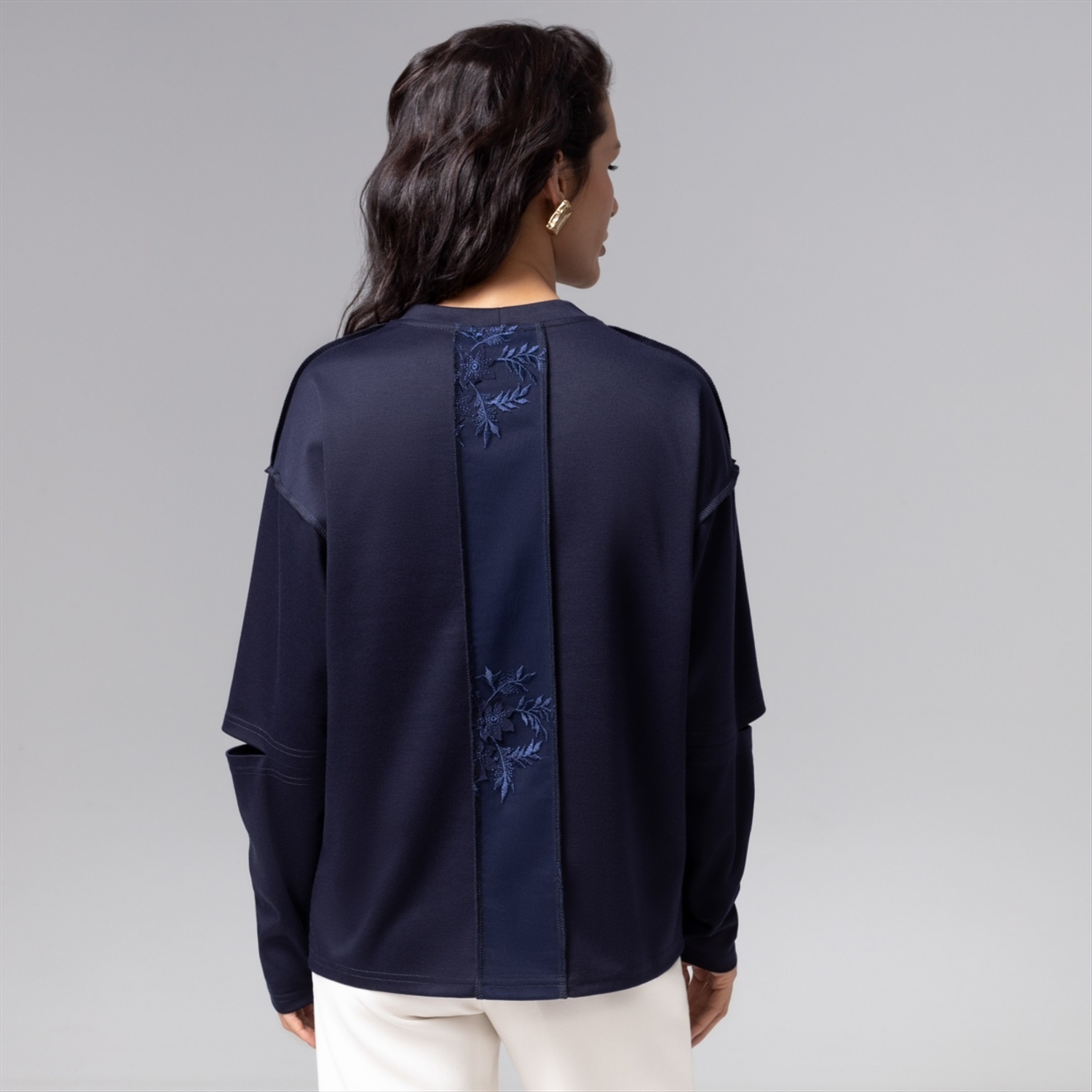Лонгслив ЧАРУТТИ в дорогом глубоком синем цвете представляет собой баланс стиля casual и haute couture. Свободная посадка подходит любому типу фигуры. Изящное кружевное дополнение по передней стороне изделия придает изделию элегантный вид, а трендовые прорези на рукавах подчеркивают ваше внимание к деталям. Безупречный пошив демонстрируют идеальные строчки и тщательная проработка швов, что гарантирует долговечность носки.
