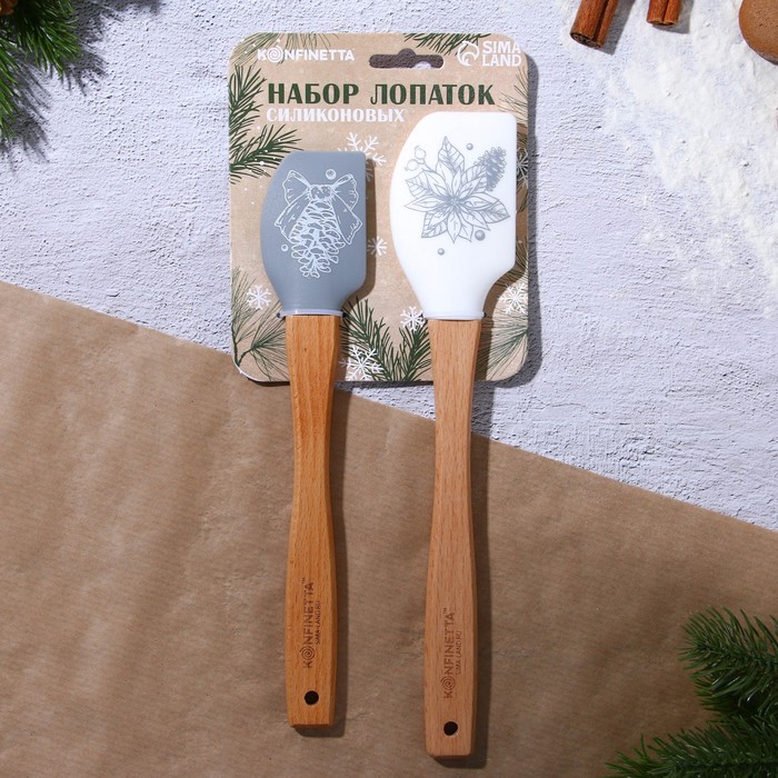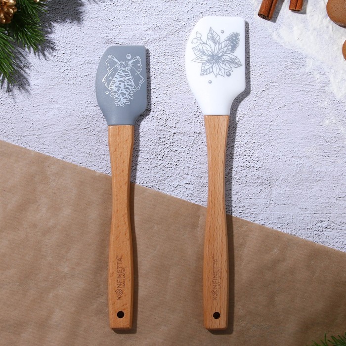 Производитель: KONFINETTA; Габариты: 29 x 12 x 1,3; Страна: Китай; В боксе: 125 набор; В наборе: 2 набор; Состав: Дерево, силикон; Материалы: дерево, силикон; Фасовка: по 1 набор; Индивидуальная упаковка: Пакет; Сертификат: РСТ; Набор: Да; Цвет: Белый, Серый; В наборе, шт.: 2; Материал ручки: Дерево; Рисунок: Да; Символ года: Нет; Тематика праздника: Новый год; Материал: Дерево, Силикон; Можно мыть в посудомоечной машине: Нет; Вид: Кондитерские лопатки