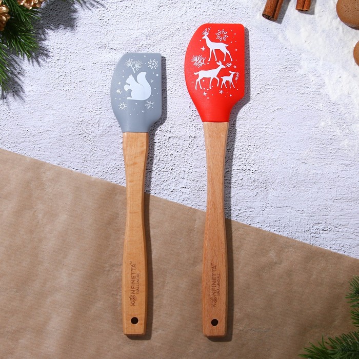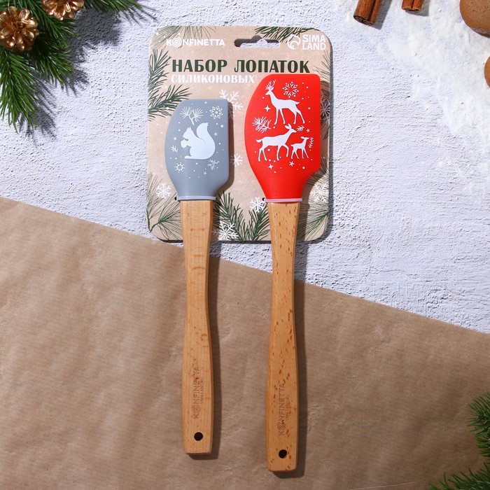Производитель: KONFINETTA; Габариты: 29 x 12 x 1,3; Страна: Китай; В боксе: 125 набор; В наборе: 2 набор; Состав: Дерево, силикон; Материалы: дерево, силикон; Фасовка: по 1 набор; Индивидуальная упаковка: Пакет; Сертификат: РСТ; Набор: Да; Цвет: Красный, Серый; В наборе, шт.: 2; Материал ручки: Дерево; Рисунок: Да; Символ года: Нет; Тематика праздника: Новый год; Материал: Дерево, Силикон; Можно мыть в посудомоечной машине: Нет; Вид: Кондитерские лопатки