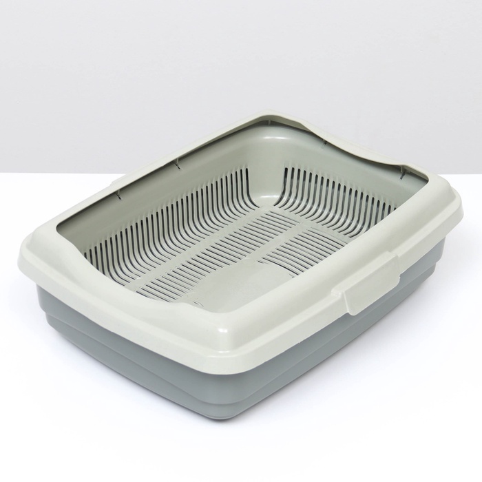 Лоток большой с сеткой и бортиком Atlantis "Стандарт", 43 х 33 х 12,5 см, серый