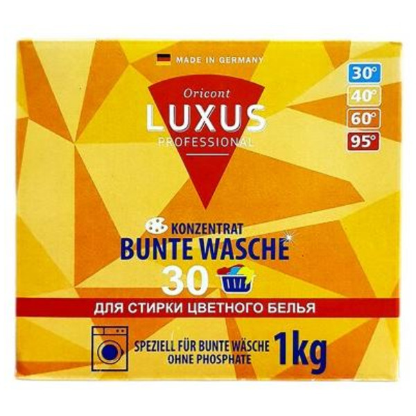 Luxus Professional концентрированный стиральный порошок, стабилизаторы красок защищают ткани от выцветания, линьки и усиливают яркость пигментов. Эффективен для деликатной стирки при 30 градусах. Подходит для всех типов стиральных машин и ручной стирки.