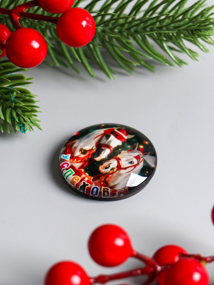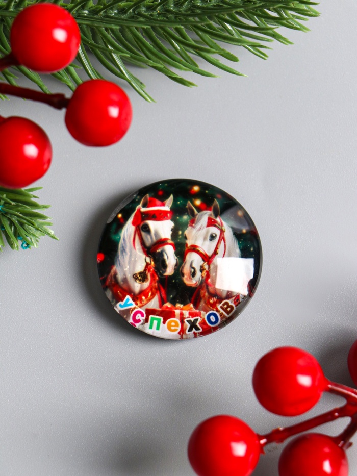Магнит на холодильник «Двойка белоснежных коней: С Новым годом», стекло, d=3.3 см