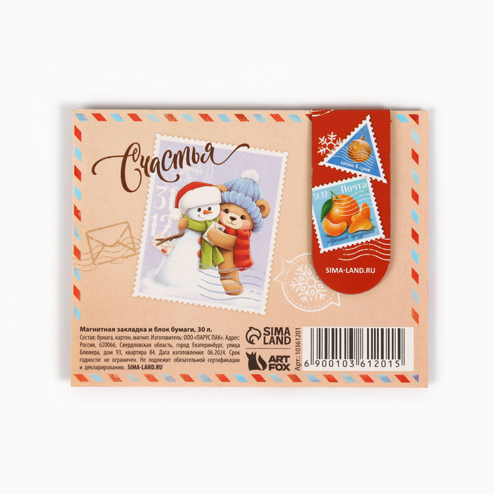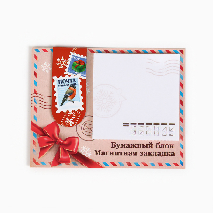 Подарочный набор новогодний, магнитная закладка и блок бумаг 30 листов «Новогодняя почта»