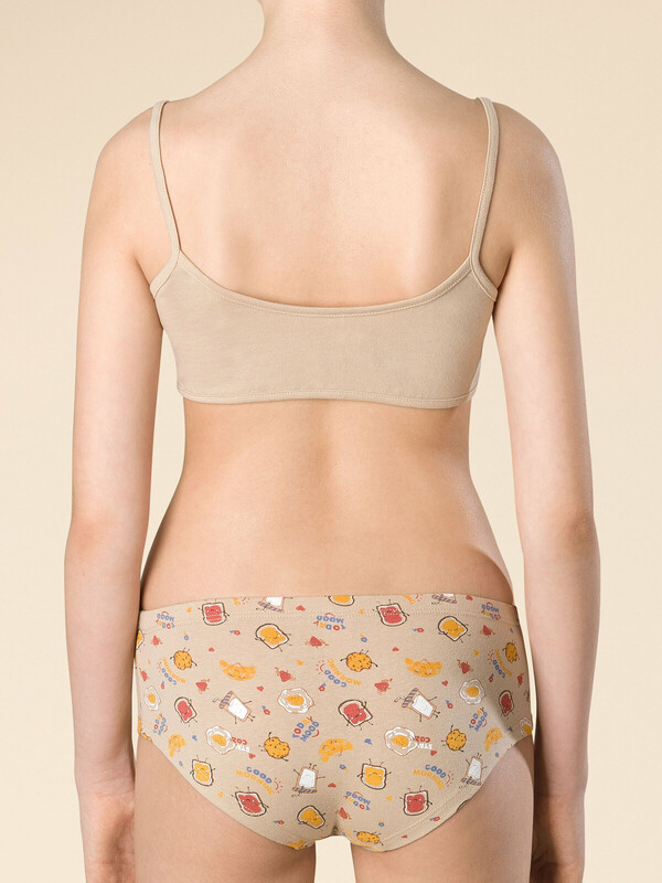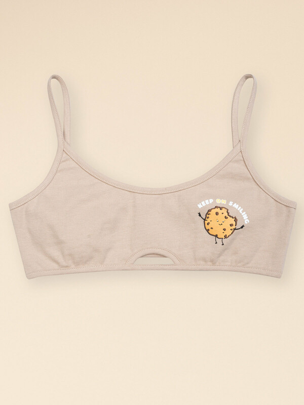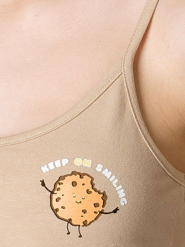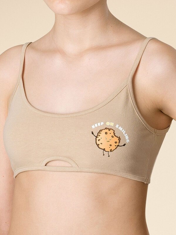Выбирая бельё своему ребёнку, каждая мама хочет быть уверенной в его качестве и в том, что ребёнку будет действительно комфортно. Укороченный топ для девочки полностью соответствует этим запросам. Бра изготовлено из ткани с высоким содержанием хлопка — оно безукоризненно мягкое и воздухопроницаемое. Благодаря эластану в составе ткани изделие в течение длительного времени сохраняет превосходную форму. Качественный материал и грамотный крой обеспечивают идеальную посадку белья — ребёнку удобно на протяжении всего дня. Тонкие мягкие бретели не сползают и не давят. Низ и проймы модели отделаны пайпингом в тон, благодаря чему они не растягиваются. Топ представлен в актуальном естественном бежевом цвете и украшен уютным симпатичным принтом в стиле "хюгге" с позитивным настроением. Перевод: "Продолжай улыбаться". Принт эластичный и стойкий, не боится частых стирок. Спереди по низу небольшое декоративное отверстие. Бра идеально подходит для носки под одеждой — отличный вариант белья для девочки-подростка. Станет заме