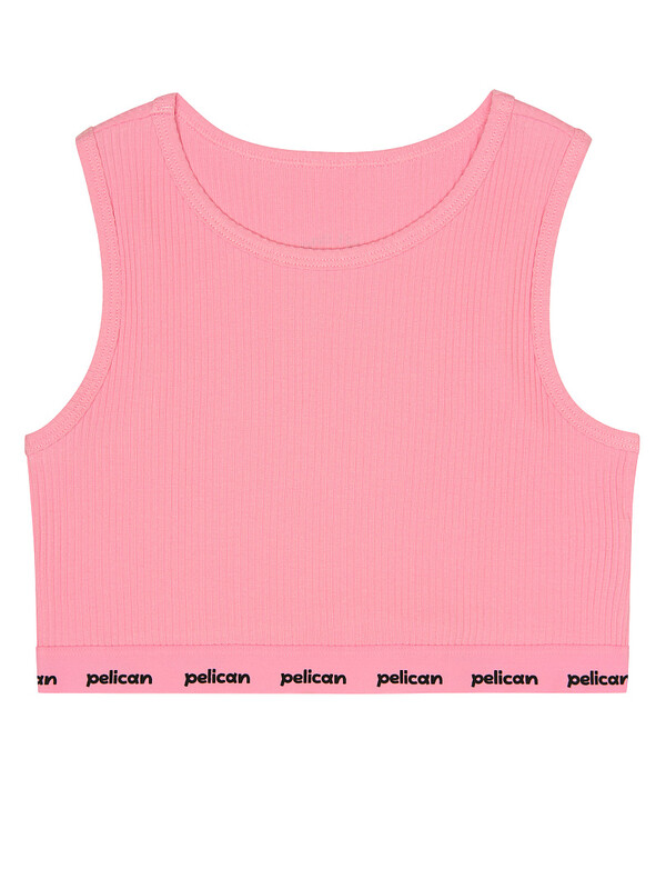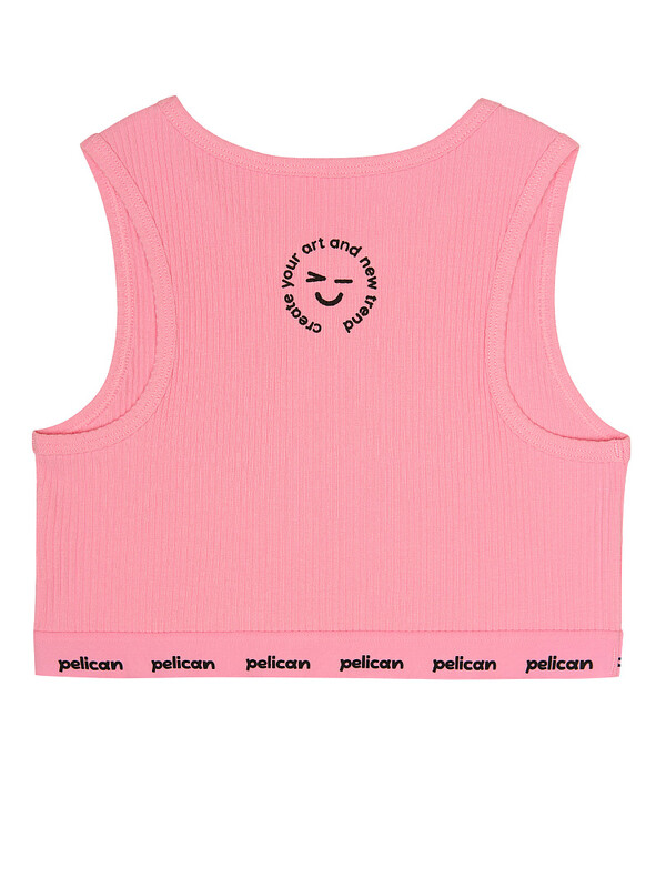 Современная спортивная майка топ для девочки из натурального материала в рубчик. Плотная, хорошо тянется, приятная к телу. Не давит и не натирает по краям. Широкий эластичный низ с  текстом плотно, но мягко фиксирует топ на месте. Он не будет подниматься вверх при активных движениях и врезаться в кожу. В этом топе учтены все особенности и потребности детского организма. Перевод текста "создай свое искусство