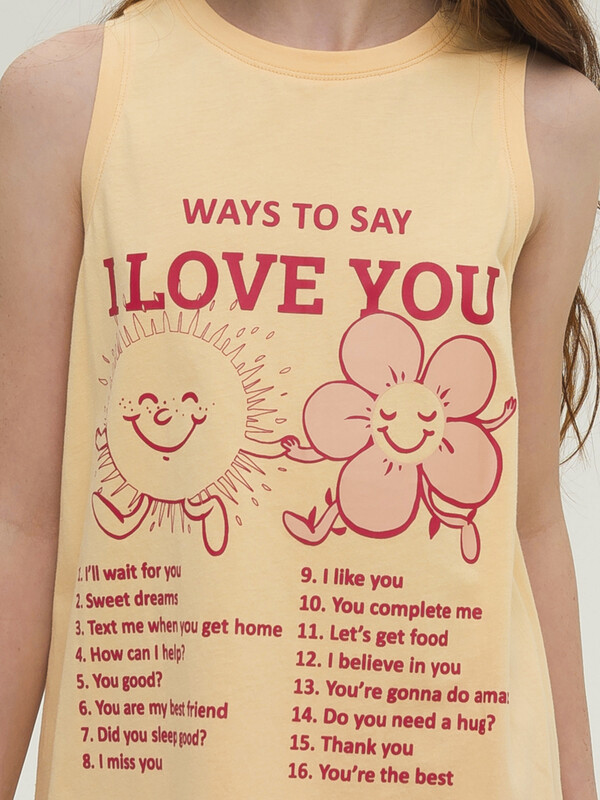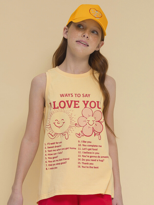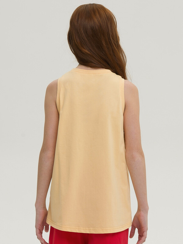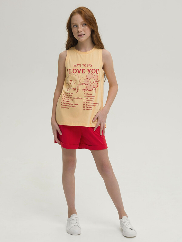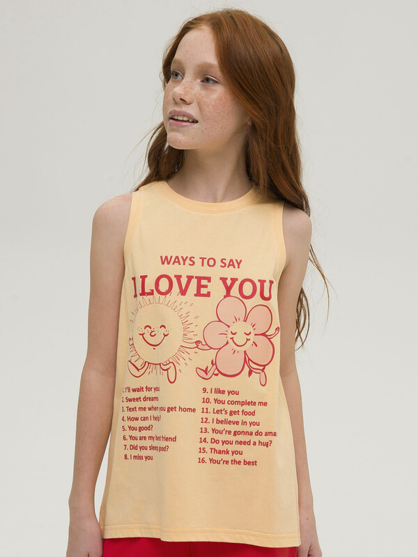 Легкая, летняя майка для девочек - базовая модель на каждый день. Выполнена из 100% хлопка, материал не вызывает аллергии, а тело ребенка всегда дышит. Изделие трапецевидногоо силуэта, перепад по низу делает майку интересной. Акцентный текстовый принт в сочетании забавными персонажами задают настроение и привлекают внимание. Майку можно сочетать с любым низом, создавая модные образы. Это идеальная повседневная одежда для девочек для жаркого лета.