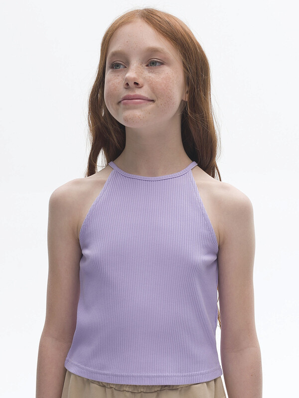 Состав: 58%хлопок 37%вискоза 5%эластан Укороченный топ-халтер из модной ткани в рубчик для девочки. В составе преобладают хлопок и вискоза – модель мягкая, приятная на ощупь и комфортная для кожи ребёнка. Эластан помогает изделию не терять форму. По горловине завязка, с её помощью можно регулировать высоту горловины и посадку топа. Топ-халтер - мастхэв этого лета. Модель подчёркивают красоту открытых плеч, рук и спины. Вырез под горло даёт дополнительный акцент на плечи и удлиняет шею. Для самых модных девочек. Сочетается с любыми объемными низами. Комментарии к товару