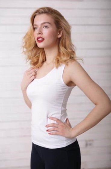 Производитель: Lilians Оптовая продажа. Майка женская из трикотажного полотна, полуприлегающего силуэта, на широких бртелях, с U-образным вырезом горловины, однотонная. Состав: Хлопок: 100%