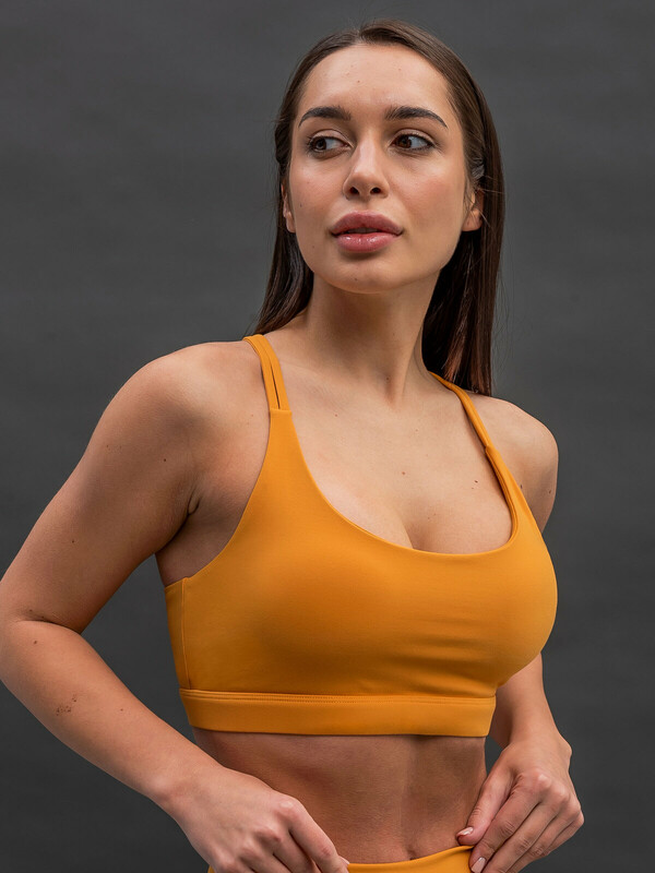 Спортивный женский топ-бра из эластичной ткани. Короткий топ с открытой спиной на тонких четырех бретелях, красиво перекрещивающихся на спине. Трендовые цвета и уникальные плоские швы. Женский спортивный кроп топ для фитнеса и йоги сделает тренировки легкими, движения свободными, а занятия спортом в радость. Уникальные плоские швы не впиваются в кожу, не натирают при движениях, создавая приятное соприкосновение с телом. Долгие занятия йогой или активные занятия на тренажерах больше не принесут дискомфорта. Удобный укороченный топ для женщин подходит для тренировок и для занятий в тренажерном зале, пилатеса, для бега, для йоги и фитнеса, занятий танцами и прогулок. Комфортная посадка топика красиво сядет по фигуре, подчеркнув природные линии тела. Топ с чашками надежно поддержит грудь даже при активных движениях. Топ без косточек. Плотная резинка под грудью по краю спортивного топа надежно зафиксирует изделие на теле. Топ с вырезом на спине, дополнительное отверстие элегантной формы способствует воздухопроница