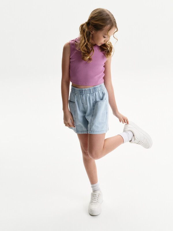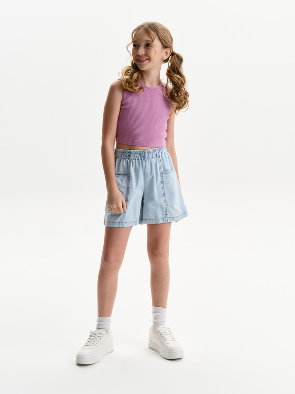 Состав: 58%хлопок 37%вискоза 5%эластан Выбирайте нужный размер по таблице размеров на фото. Цвет товара на экране вашего устройства может отличаться от цвета изделия вживую. Укороченная майка с круглым вырезом горловины, выполнена из трикотажного смесового хлопкового полотна с вложением эластана. Полотно-кашкорсе, с фактурной поверхностью в рубчик. Топ детский летний для подростков базовая вещь в гардеробе каждой девочки. Кроп топ спортивный без чашечек для повседневного использования отлично впишется в праздничный или нарядный стиль. Облигающий силуэт - SlIM. Особенностью модели являются небольшие отверстия в виде капли, расположенные на передней половинке, по центру плечевых швов. Майка укороченная приталенная для классического наряда или многослойных образов. Модная однотонная борцовка "американка" выполнена из высококачественного трикотажа кашкорсе лапша, которая обеспечивает износотойкость и приятные ощущения при носке. Топ лаконичного дизайна прекрасно сочетается с различными шортами и юбками. Отличный выбор для летнего отдыха! Горловина, пройма и декоративные отверстия окантованы бейкой из основного материала. Низ изделия подшит на плоскошовной машине. Топик для девочек и подростков можно носить под второй слой одежды. Яркий топ подойдет для занятия спортом, в школу, на прогулку летом, в детский сад или лагерь. Модель запускается с 3-х лет. Топы подходят для носки круглый год: в жаркую погоду летом, и как первый слой осенью, зимой, весной и демисезон. Комментарии к товару