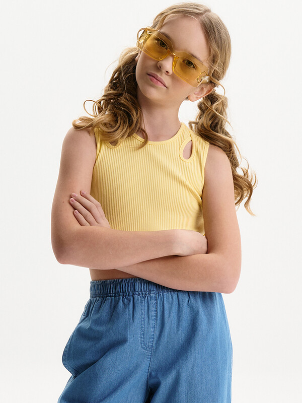 Состав: 58%хлопок 37%вискоза 5%эластан Выбирайте нужный размер по таблице размеров на фото. Цвет товара на экране вашего устройства может отличаться от цвета изделия вживую. Укороченная майка с круглым вырезом горловины, выполнена из трикотажного смесового хлопкового полотна с вложением эластана. Полотно-кашкорсе, с фактурной поверхностью в рубчик. Топ детский летний для подростков базовая вещь в гардеробе каждой девочки. Кроп топ спортивный без чашечек для повседневного использования отлично впишется в праздничный или нарядный стиль. Облигающий силуэт - SlIM. Особенностью модели являются небольшие отверстия в виде капли, расположенные на передней половинке, по центру плечевых швов. Майка укороченная приталенная для классического наряда или многослойных образов. Модная однотонная борцовка "американка" выполнена из высококачественного трикотажа кашкорсе лапша, которая обеспечивает износотойкость и приятные ощущения при носке. Топ лаконичного дизайна прекрасно сочетается с различными шортами и юбками. Отличный выбор для летнего отдыха! Горловина, пройма и декоративные отверстия окантованы бейкой из основного материала. Низ изделия подшит на плоскошовной машине. Топик для девочек и подростков можно носить под второй слой одежды. Яркий топ подойдет для занятия спортом, в школу, на прогулку летом, в детский сад или лагерь. Модель запускается с 3-х лет. Топы подходят для носки круглый год: в жаркую погоду летом, и как первый слой осенью, зимой, весной и демисезон. Комментарии к товару