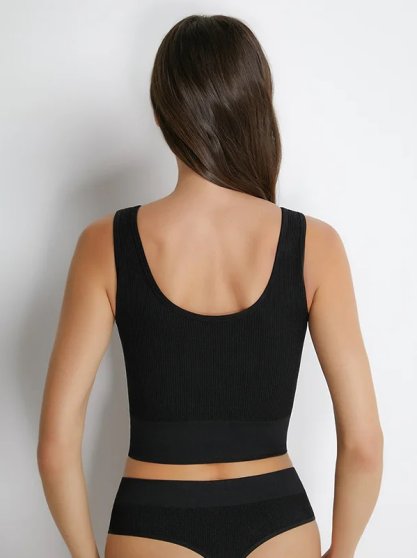 Производитель: Omsa Оптовая продажа. Майка женская из мягкой микрофибры с люрексом и вафельным плетением, укороченная, бесшовная, на широких бретелях. Состав: Люрекс: 3% Эластан: 7% Полиамид: 90%
