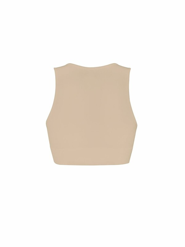 Майка-топ из эластичного рибового полотна в вертикальынй рубчик. Без подклада. Без каркасов и боковых корсетных вставок. Брендированная лента под грудью.