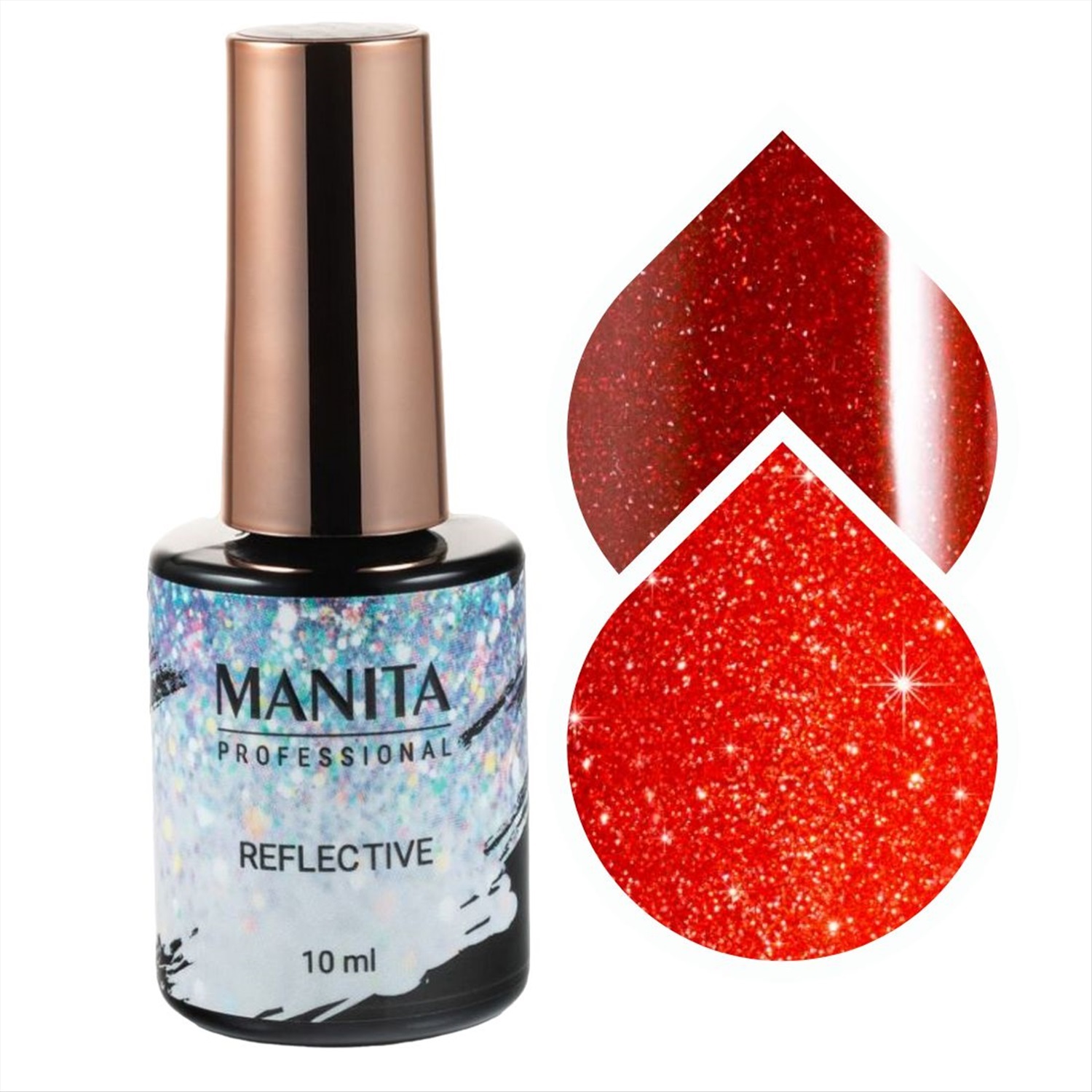 Светоотражающие гель-лак для ногтей Reflective от Manita Professional — это коллекция гель-лаков с невероятным сиянием мелких блесток и мерцающих частиц при любом освещении, а при вспышке или попадании прямого солнечного света или света от лампы этот эффект усиливается в десятки раз.