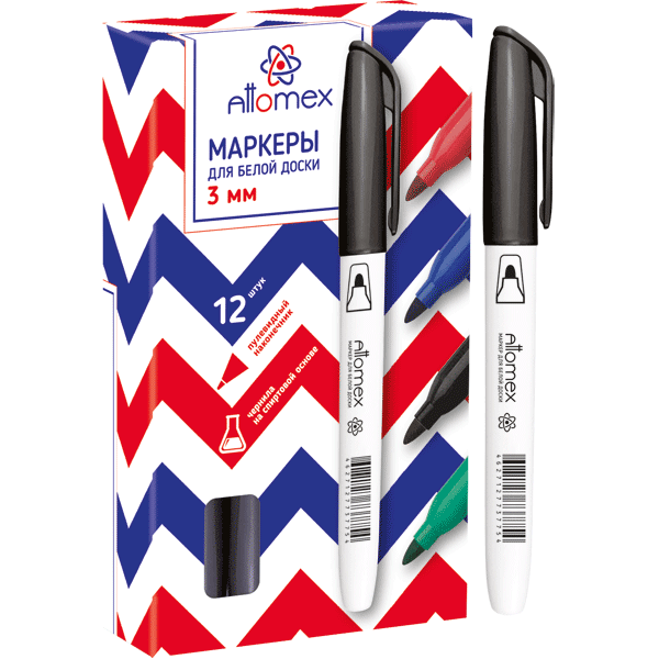 Маркер для доски "Attomex пулевидный 3мм черный 5040703/12/Китай