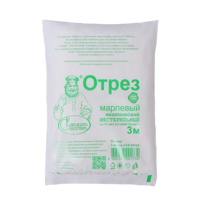 Отрез марлевый медицинский нестерильный выпускается из марли медицинской хлопчатобумажной отбеленной плотной намотки в рулоне. Благодаря новой технологии производства марлевый отрез соответствуют европейским стандартам.