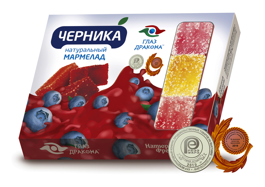Cрок хранения: 120 дней Яркий, насыщенный вкус натурального мармелада Черника Глаз Дракона поможет вам далеко смотреть и хорошо видеть. Доктор Шустер – мармелад – каждый будет ему рад! Натуральный мармелад ручной работы от Dr.Shuster с экстрактом черники не только вкусное лакомство, но и польза для вашего здоровья. Красивая герметичная упаковка весом 300 гр поделена на 12 прямоугольных кусочков, каждый на индивидуальной бумажной подложке. Дизайн, созданный для каждого вкуса мармелада Dr.Shuster радует глаз, а сам мармелад будет радовать своим вкусом! Приятный сладкий вкус этого мармелада придется всем, кто любит чернику. Ягодное послевкусие без приторной сладости – то, что нужно к вечерней чашечке чая. Известно, что черника содержит колоссальное количество антиоксидантов, превосходя по их количеству практически все известные виды фруктов, овощей и ягод. Не только улучшает зрение, но и способствует нормализации кровяного давления и уровня холестерина, снижает артериальное давление, улучшает работу головного мозга. Группа: здоровое питание Форма выпуска: мармелад в авторской, дизайнерской упаковке 300 г Натюрлих–Фреш® Dr.Shuster® натуральный мармелад ручной работы – натуральное лакомство и польза для здоровья. Мармелад натуральный Черника ГЛАЗ ДРАКОНА® Натюрлих–Фреш® Замечательный натуральный мармелад из плодов черники, ручной работы улучшит зрение, укрепит иммунитет и поднимет настроение. Черника – содержащиеся в чернике вещества способствуют улучшению зрения – регулярный прием черники часто помогает полностью восстановить природную остроту зрения, испорченного книгами, компьютерами или возрастными изменениями. сахар, патока карамельная, желеобразователь пектин, регулятор кислотности лимонная кислота, черника. Черника (плоды) - содержит флавоноиды, антоцианы, дубильные вещества, эфирные масла, микроэлементы (хром, цинк, марганец), органические кислоты и большое количество витамина С; обладает сильным противовоспалительным и антиоксидантным действием; предотвращает нарушение остроты зрения, рекомендуется при заболеваниях глаз. Белки - 0 г, жиры - 0 г, углеводы - 74 г "258 ккал/1080,2 кДж Комментарии к товару