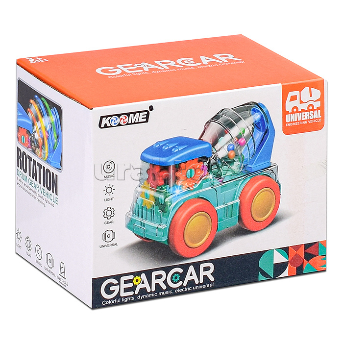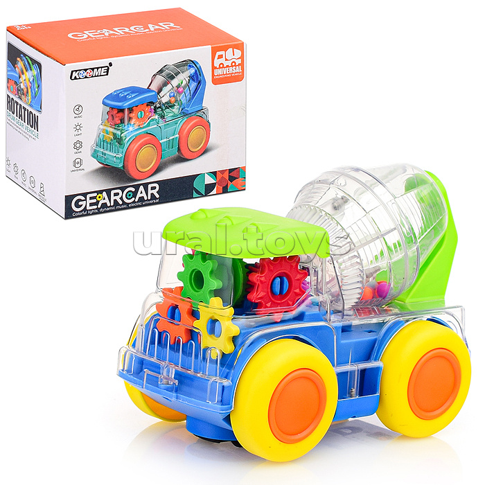 Наличие: >10 Движется в случайном направлении с разноцветной подсветкой. Звуки работы двигателя и динамичная мелодия без слов. Во время движения внутри вращаются шестеренки и бетономешалка. Работает от 3-х батареек «АА» (не входят в комплект). Размеры: 15,5 х 9,5 х 11 см. Материалы: пластик, полимерные материалы. Соответствует требованиям безопасности продукции. Для детей от 3-х лет. Комментарии к товару