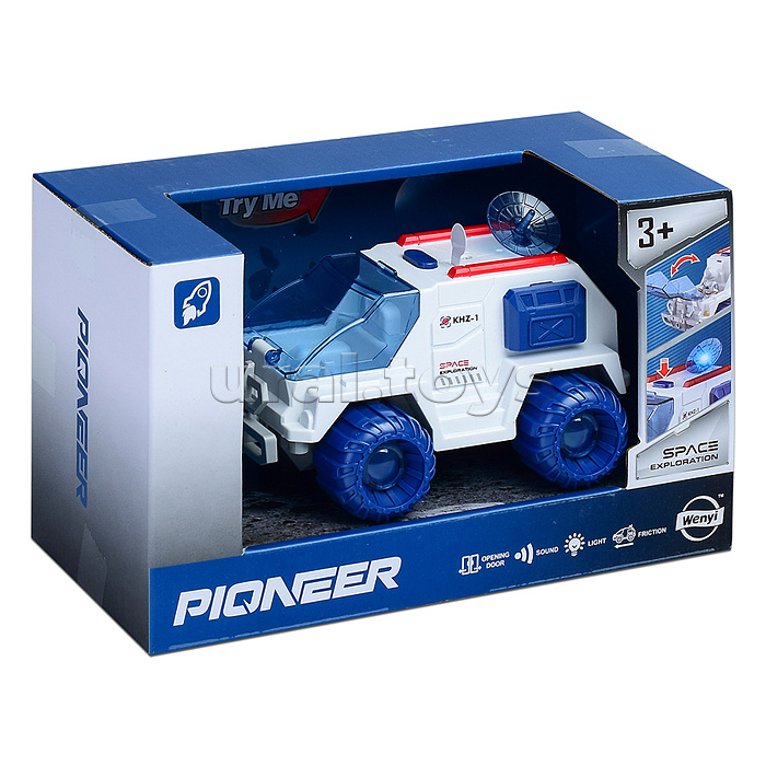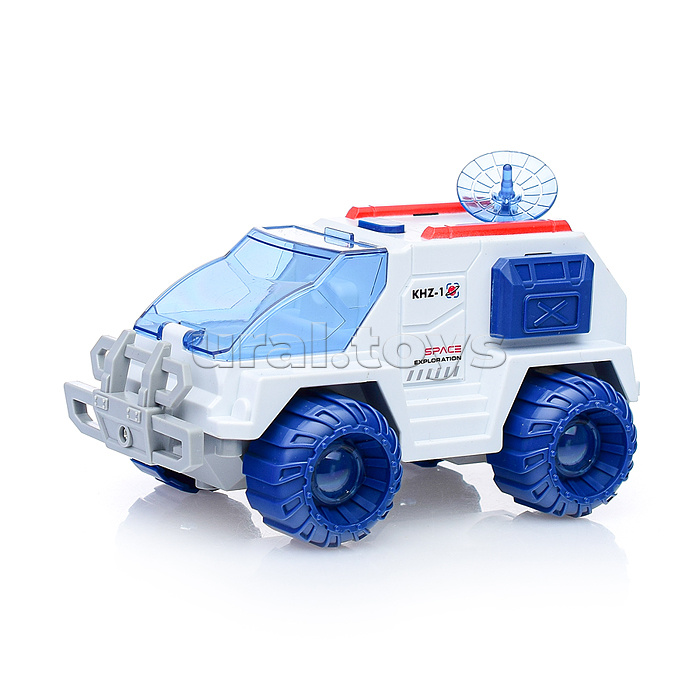 Наличие: >10 • Размеры игрушки: 18х10х9 см. • Инерционный механизм движения. • Открывающаяся кабина. • При нажатии кнопки на крыше, светится антенна и звук приёма сигнала. • Свет и звук работают от 3-х батареек "AG13" (входят в комплект для демонстрации) • В комплекте фигурка космонавта (4х1.5х6.5 см.) • Материал: пластик. • Соответствует требованиям безопасности продукции. • Для детей от 3-х лет. Комментарии к товару