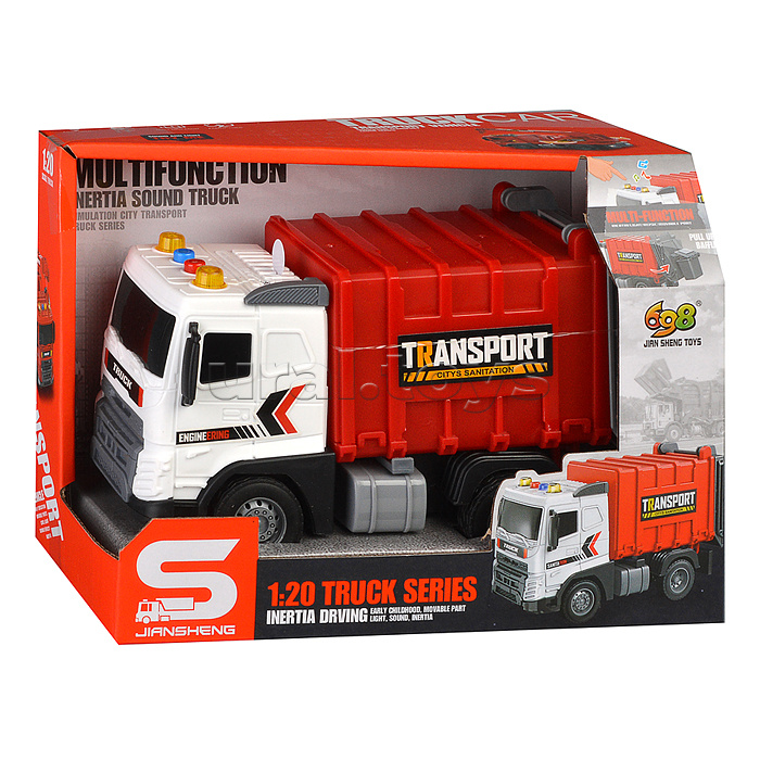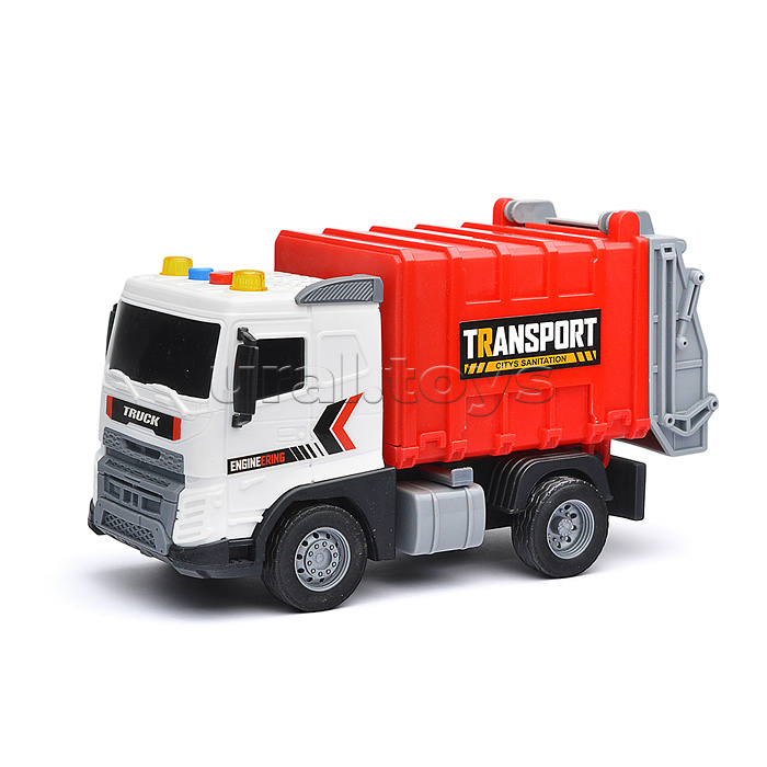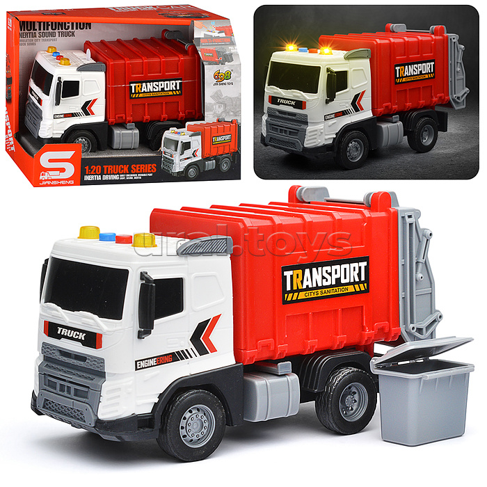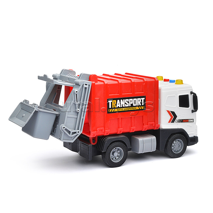 Наличие: >10 • Размеры игрушки: 20х8.5х12 см. • Инерционный механизм движения. • Открывающаяся задняя дверь кузова. • Кнопки на крыше активируют звуки двигателя, клаксона, заднего хода, сопровождаемые подсветкой проблесковых маячков. • Звук и свет работают от 3-х батареек "LR44" (входят в комплект для демонстрации) • В комплекте: 1 мусорный бак. • Материал: пластик. • Соответствует требованиям безопасности продукции. • Для детей от 3-х лет. Комментарии к товару