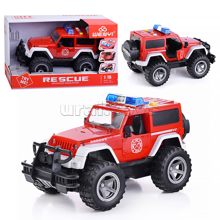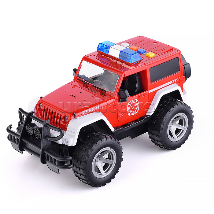 Кнопки на крыше активируют звуки двигателя, клаксона, заднего хода, сопровождаемые подсветкой проблесковых маячков. Звуки работают от 3-х батареек "AG13" (в комплекте). Двери открываются. Размер: 23 х 12 х 12 см. Масштаб 1:16. Материал: пластик, пвх. Для детей от 3-х лет. Соответствует требованиям безопасности продукции. Комментарии к товару