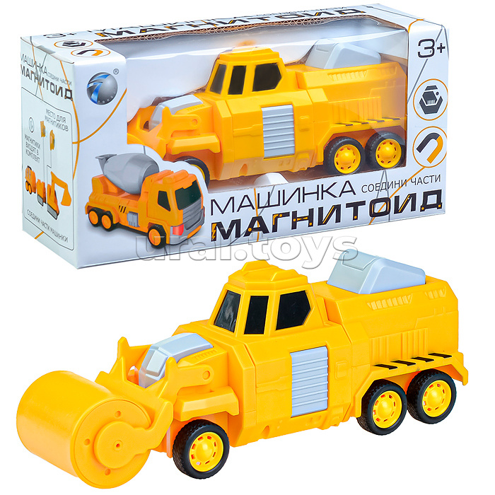 Наличие: >10 Размеры игрушки ДхШхВ: 21х6х8 см. Особенности: - машинка магнитоид состоит из 3-х частей, соединяющихся между собой (магнитики входят в комплект); - резиновые покрышки; - подвижные детали корпуса; - инерционный механизм движения. Материал: пластик, элементы из металла. Соответствует требованиям безопасности продукции. Для детей старше 3 лет. Комментарии к товару