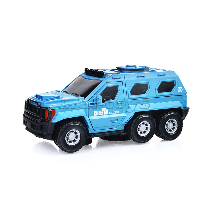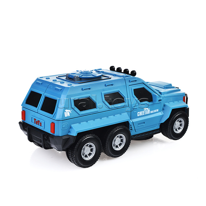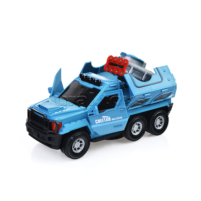 Наличие: >10 • Размеры игрушки: 22х8.5х8 см. • Работает от 3-х батареек 1.5V "АА" (не входят в комплект) • Функции: - механизм произвольного движения. - вращение на подставке. - подсветка корпуса. - открывающиеся двери, выдвижное орудие. - стрельба пластиковыми дисками (7 шт. в комплекте) • Материал: пластик. • Соответствует требованиям безопасности продукции. • Для детей от 3-х лет. Комментарии к товару