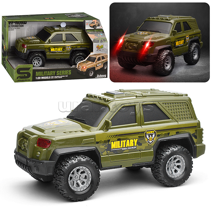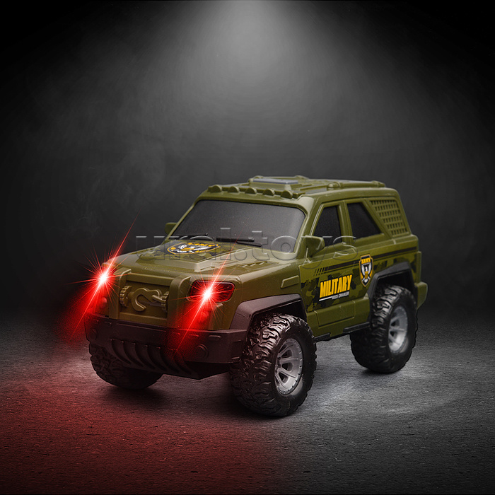 Наличие: >10 • Размеры игрушки: 17х8.5х8,5 см. • Инерционный механизм движения. • Кнопки на крыше активируют звуки двигателя, музыка, свет фар. • Звук и свет работают от 3-х батареек "LR44" (входят в комплект для демонстрации) • Материал: пластик. • Соответствует требованиям безопасности продукции. • Для детей от 3-х лет. Комментарии к товару