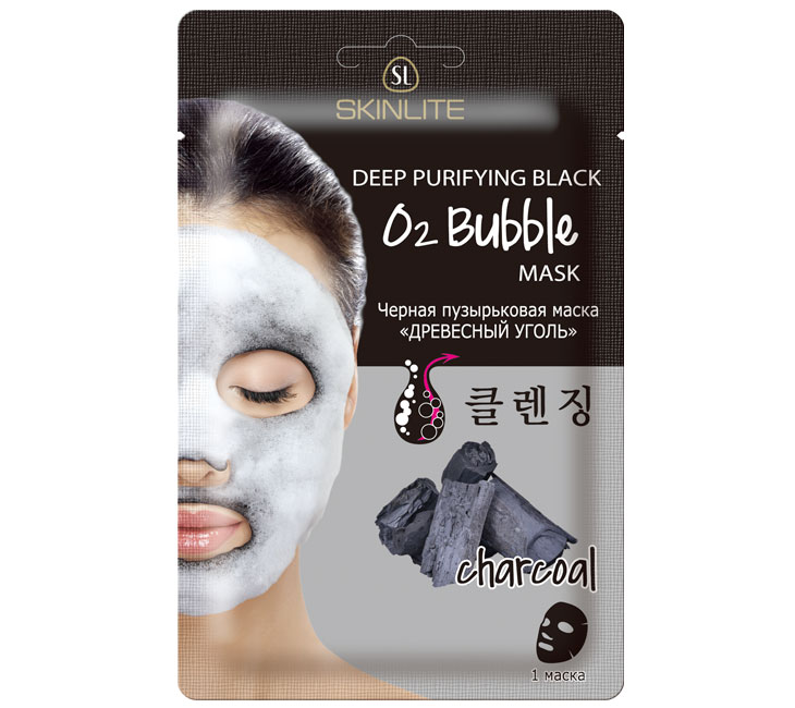 Маска для лица SKINLITE Черная пузырьковая «ДРЕВЕСНЫЙ УГОЛЬ», SL-290