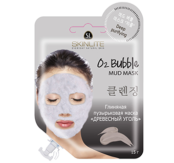 Маска глиняная пузырьковая для лица SKINLITE «ДРЕВЕСНЫЙ УГОЛЬ» SL-630