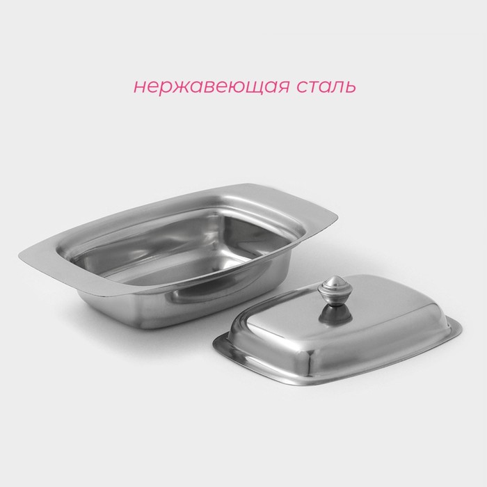 Маслёнка может быть использована для хранения сливочного масла или сыра. Ёмкость с поддоном из нержавеющей стали не окисляется, не вступает в реакцию с продуктами, сохраняет их свежесть и привлекательный внешний вид. Благодаря классическому дизайну изделие впишется в любой интерьер.