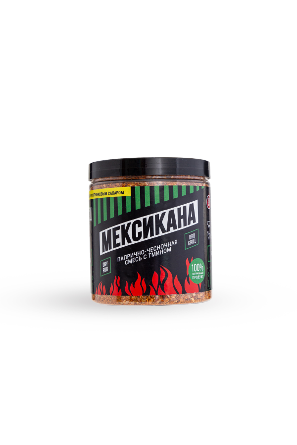 Производитель: ИП Агапкин ПА; Состав: паприка, лук,чеснок, тмин, перец черный, сахар тростниковый, соль розовая, перец халапеньо зеленый, орегано.; Норма внесения: 15...40 г/кг; Подходит для: блюд из птицы, баранины, свинины, говядины, любой кулинарии.; Количество в упаковке: 350 г (банка 500 мл); Условия и сроки хранения: в сухом месте при температуре не выше 20 град. и относительной влажности воздуха не более 75 %. Срок годности – 24 месяца со дня изготовления.
