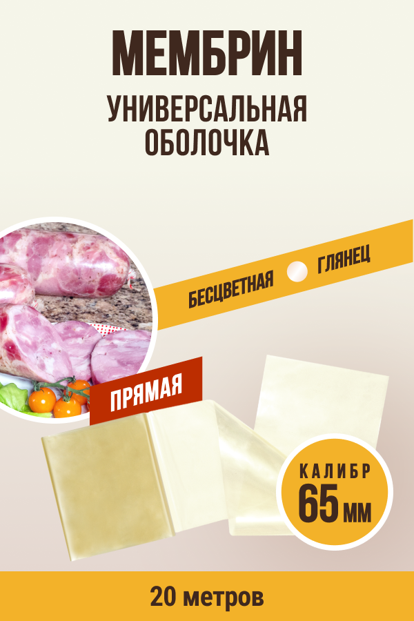 МЕМБРИН, калибр 65 мм, прямая универсальная оболочка - 20 метров, бесцветная
