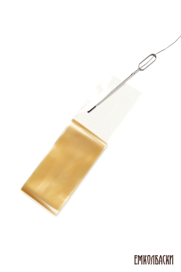 Перед использованием оболочку можно замочить на 5-10 минут в теплой воде для придания ей большей эластичности, а можно набивать в нее и без замачивания.