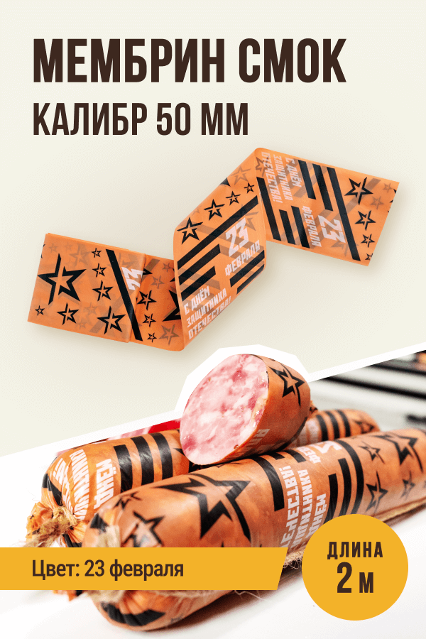 23 февраля - Праздничная оболочка МЕМБРИН СМОК, калибр 50 мм, прямая - 2 метра, копчение с нанесенным рисунком