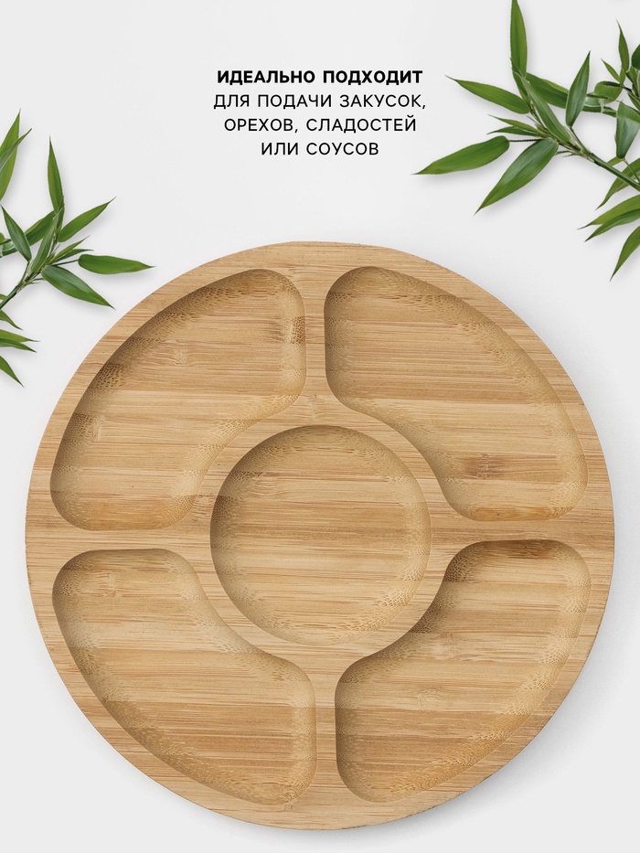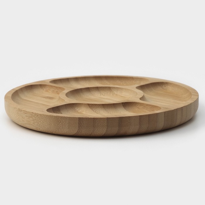 Менажница Доляна Striata, d=25 см, 5 секций, бамбук, бежевая