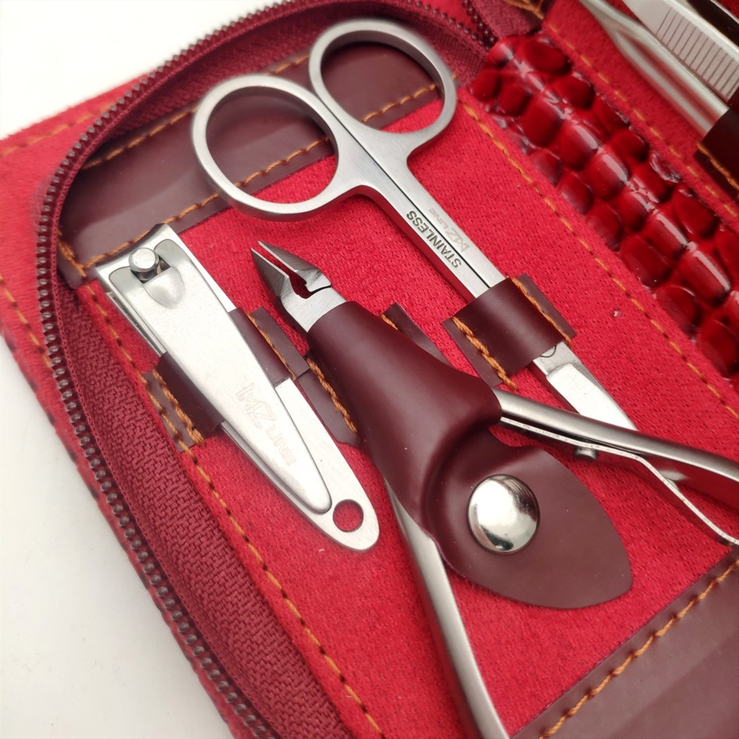 Компактный размер, набор помещается в любой карман или сумочку. Элегантный чехол выполнен из лакированной кожи. Инструменты изготовлены из углеродистой стали высокого качества.