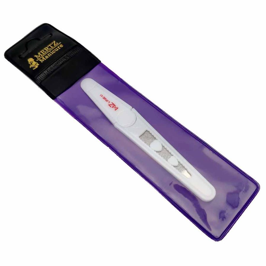 Пилочка для ногтей сапфировая Mertz A45 имеет прямое лезвие с сапфировой крошкой длиной 10,5 см.
