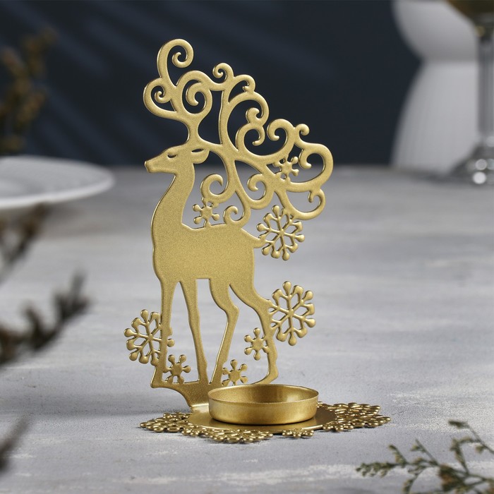Металлический подсвечник на 1 свечу «Олень», 6.5×9.6×14.5 см, золотой