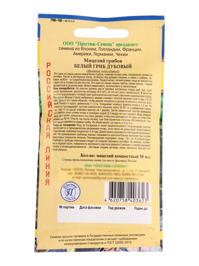 Мицелий Белый гриб дубовый, 50 мл, «Престиж семена»