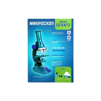 Производитель: Эврики; Габариты: 18 x 7,5 x 25; Страна: Китай; В боксе: 60 шт; Состав: Пластик; Материалы: пластик; Фасовка: по 1 шт; Индивидуальная упаковка: Картонная коробка с PVC; Габариты товара: 10 см × 6,5 см × 19 см; Сертификат: Не подлежит сертификации; Тип питания: От батареек; Для кого: Унисекс; Возраст: От 8 лет; Количество батареек: 2; Максимальное увеличение, крат: 450; Дополнительные функции: Светящаяся; Типоразмер батареек: AA (LR6); Увеличение, крат: 100 - 450; Вид исследований: Опыты с микроскопом; Фиксированная цена: Да