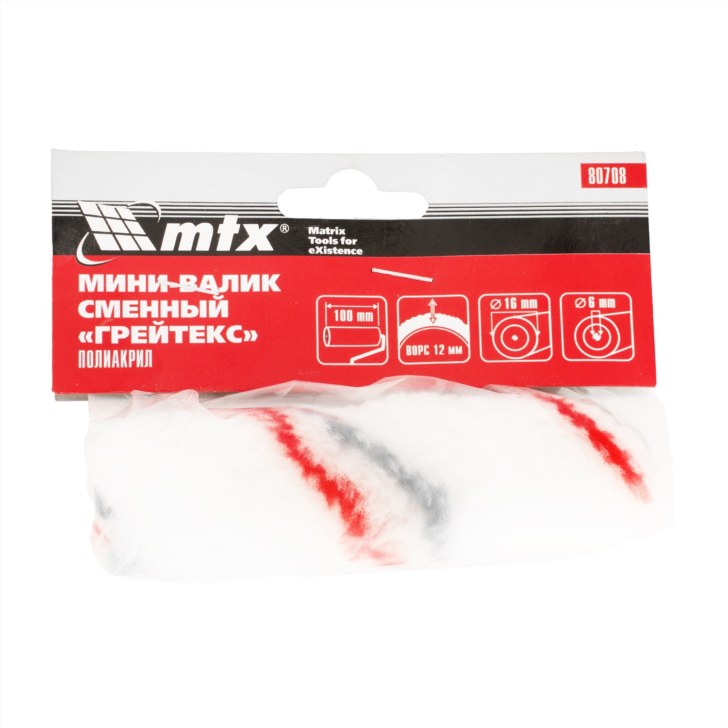 Сменный мини-валик MTX «ПОЛИТЕКС» 80708 шириной 100 мм и диаметром 16 мм, с ворсом из полиакрила 12 мм, устанавливается на бюгель диаметром 6 мм. Подходит для большинства поверхностей: оштукатуренных, бетонных, деревянных, металлических и др. Компактный валик удобен для окрашивания труднодоступных участков и поверхностей небольшой площади.