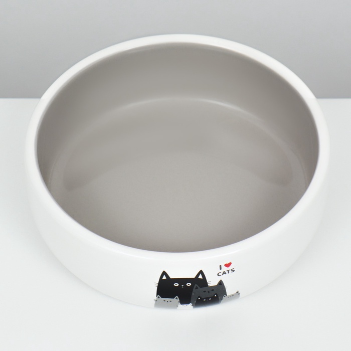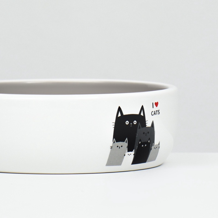 Миска керамическая "Любимые коты" 300 мл 13,4 x 4 cм, серо-белая