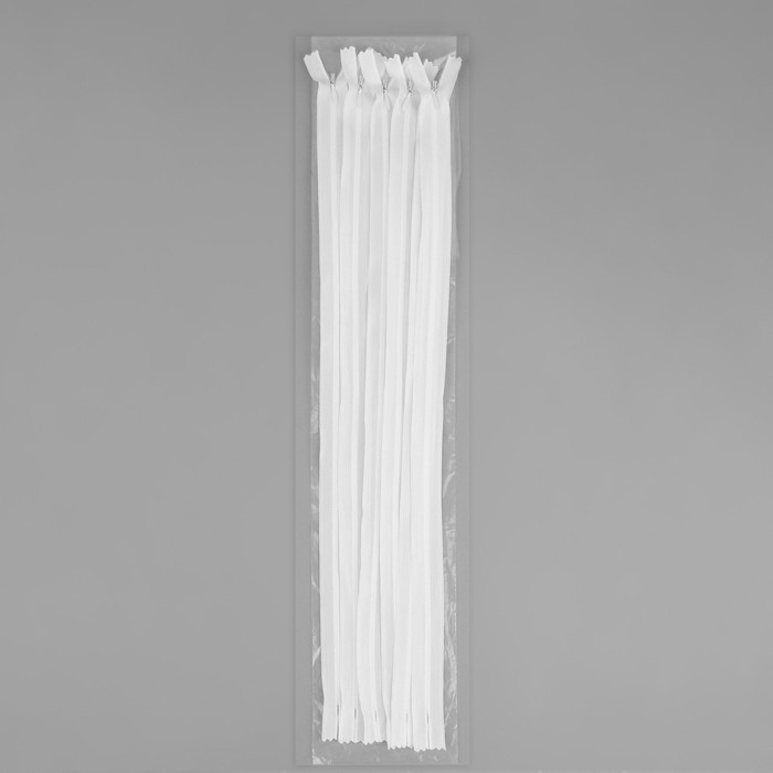 Габариты: 26 x 2,5 x 0,8; Страна: Китай; В боксе: 2000 шт; Состав: Металл, нейлон, пластик; Материалы: металл, нейлон, пластик; Фасовка: по 10 шт; Индивидуальная упаковка: Пакет (БОПП, полиэтилен, ПВХ, дой-пак); Габариты товара: 53 см × 3 см × 0,3 см; Сертификат: Не подлежит сертификации; Набор: Нет; Цвет: Белый; Длина, см: 50; Количество замков: 1; Фасовка, шт.: 10; Вид: Потайная; Размер звеньев: №3; Цвет звеньев: В цвет тесьмы; Тип застёжки: Неразъёмная; Материал звеньев: Пластик; Водостойкость: Нет; Особенности молнии: Без особенностей; Тип: Автомат