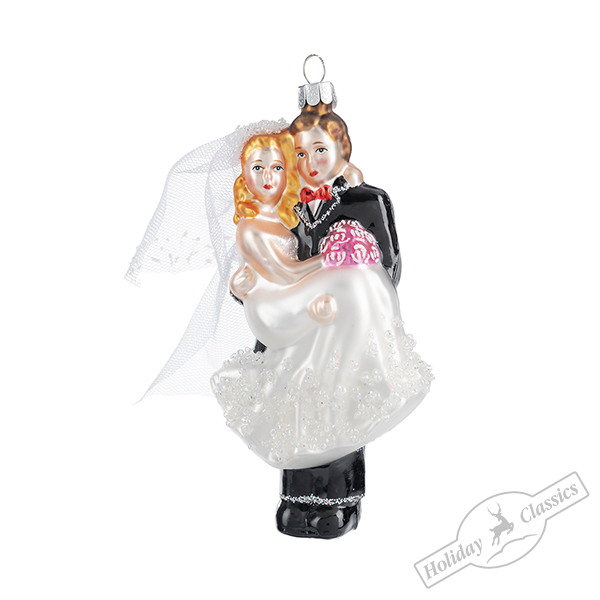 Украшение на ёлку из стекла Молодожёны - изделие из коллекции новогодних игрушек и аксессуаров Holiday Classics. Если совместить два таких прекрасных торжества - свадьбу и Рождество - то получится одно, самое запоминающееся в жизни. Кроме того, союз двух людей в канун Рождества будет освящён и оберегаем высшими силами. Стильная композиция из стеклянных фигурок жениха и невесты украсит и освежит ваш праздник.