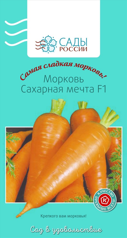 Артикул: 2178; Бренд товара: Сады России; Фасовка: 1 г; Срок отправки: ежедневно Морковь Сахарная мечта F1 Очень сладкая среднеспелая морковь. Прекрасно хранится до марта. Урожайность может достигать 8 кг с 1 м2 .