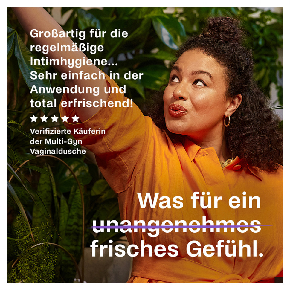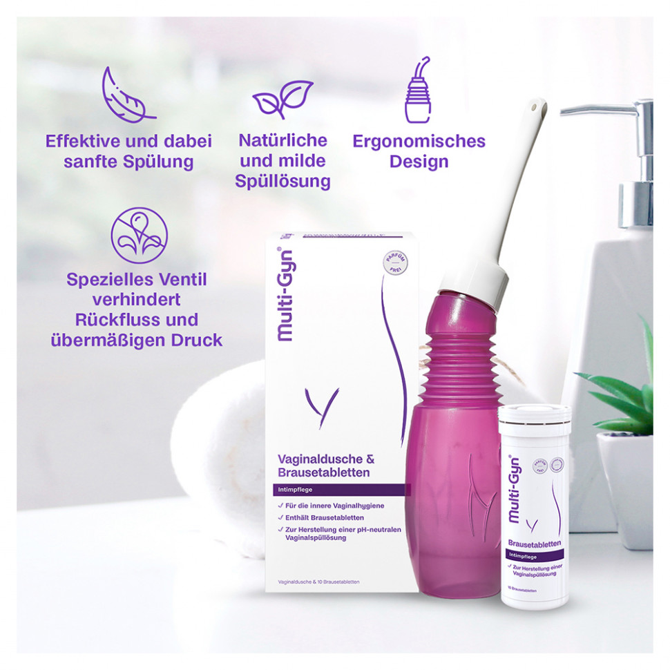 Вагинальный душ Multi-Gyn идеально подходит для очистки внутренней области влагалища. Вагинальный душ удобен для душа и может использоваться в любом положении. Мягкий и эластичный аппликатор в сочетании с гибким углом наклона флакона обеспечивают комфортное нанесение. Благодаря специальному силиконовому клапану вагинальный душ защищает от избыточного давления или обратного тока жидкости.