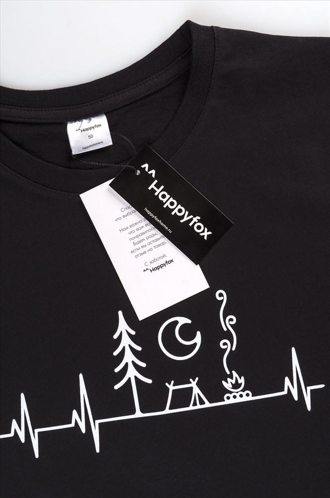 Производитель: Happyfox; Бренд: Happyfox; Страна: Россия; Состав: 100% хлопок; Материал: Кулирная гладь; Плотность ткани: 150 г/м2; Цвет: туризм.кардиограмма,черный