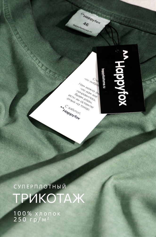 Производитель: Happyfox; Бренд: Happyfox; Страна: Китай; Состав: 100% хлопок; Материал: Кулирная гладь; Плотность ткани: 250 г/м2; Цвет: зеленый